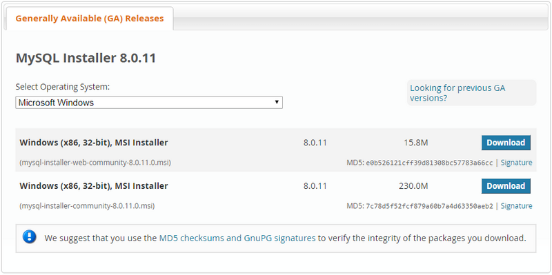 MySQL Installer有分線上安裝版本(web-community)和離線安裝(community)版本,這邊我們下載線上版本來安裝(mysql-installer-web-community-8.0.11.0.msi)。