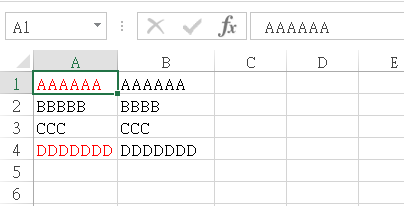 之後在A欄位輸入的文字字數如果超過5個字,則會自動以紅色顯示。