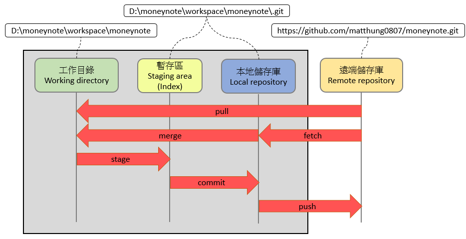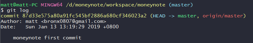 然後輸入git remote add origin "https://github.com/<your github account>/moneynote.git"將遠端repository的位址命名為"origin"
