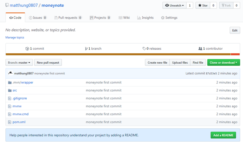 首先要註冊Github的帳戶,然後在上面建立一個記帳簿專案(moneynote)的儲存庫(repository)。
