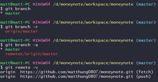 然後輸入git remote add origin "https://github.com/<your github account>/moneynote.git"將遠端repository的位址命名為"origin"
