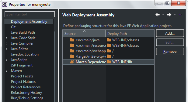 因為若打包成jar,Eclipse m2e就不會將依賴的jar(Maven dependencies)設為deploy path。