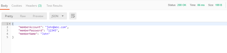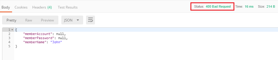 若把memberAccount或memberPassword參數從輸入的json中移除,例如改為