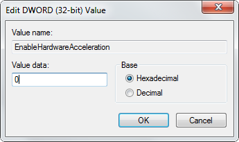 - Right-Click "EnableHardwareAcceleration"