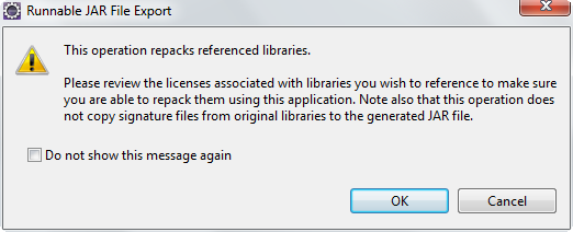 在匯出過程中如果你的專案有用到第三方的library,可能會提示下面關於license訊息,直接點OK即可。