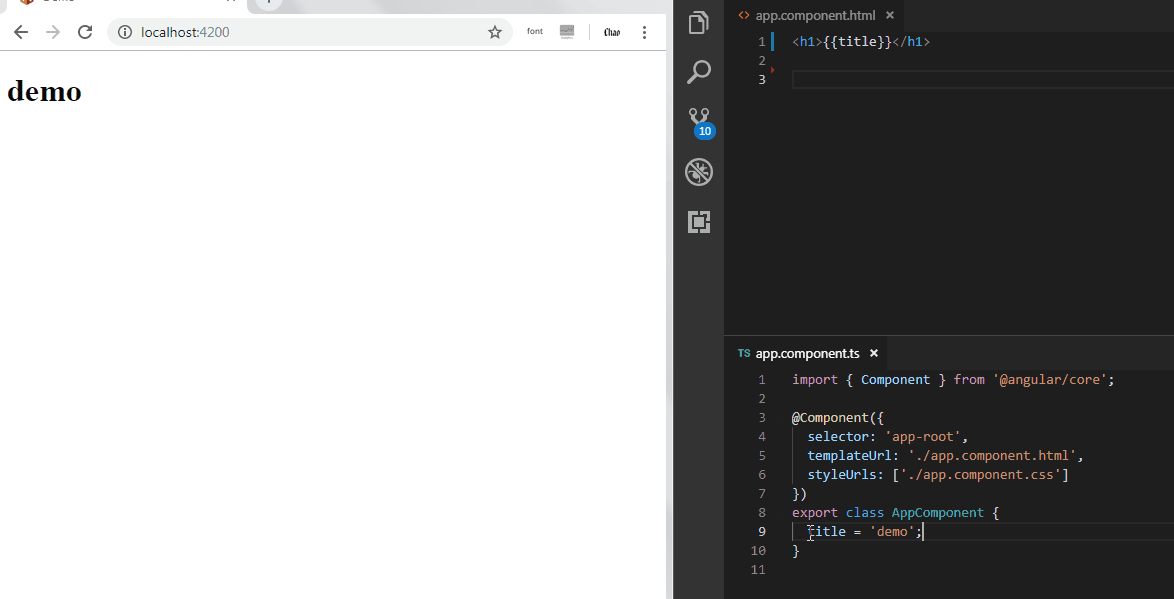 title = 'demo'; // 在app.component.html文件中 {{title}} 顯示的內容