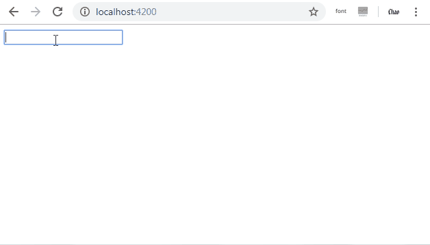 以上效果同下,可拆分為ngModel的property binding與ngModelChange的event binding,因此[()]其實是結合property binding與event binding的語法糖。Event binding的$event物件即為ngModel被修改後的內容ngModelChange