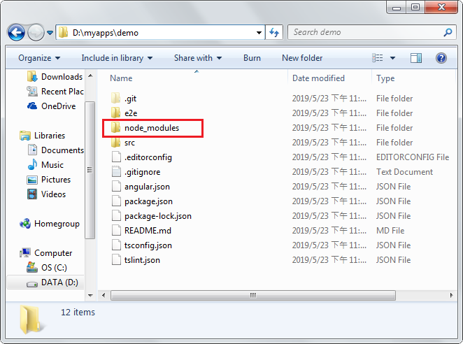 而當我們執行Angular CLI的ng new建立angular專案的過程中會執行npm install下載angular專案需要的套件,因此在建立好的angular專案目錄中就有了node_modules資料夾。