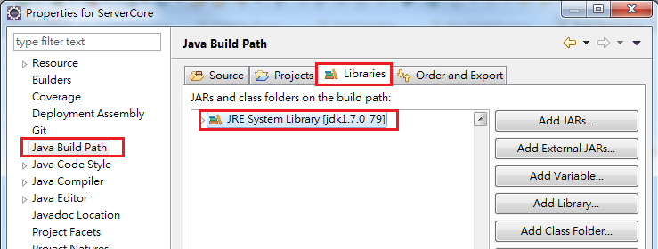 也就是Eclipse專案Build Path的[JRE System Library]為jdk 1.7,