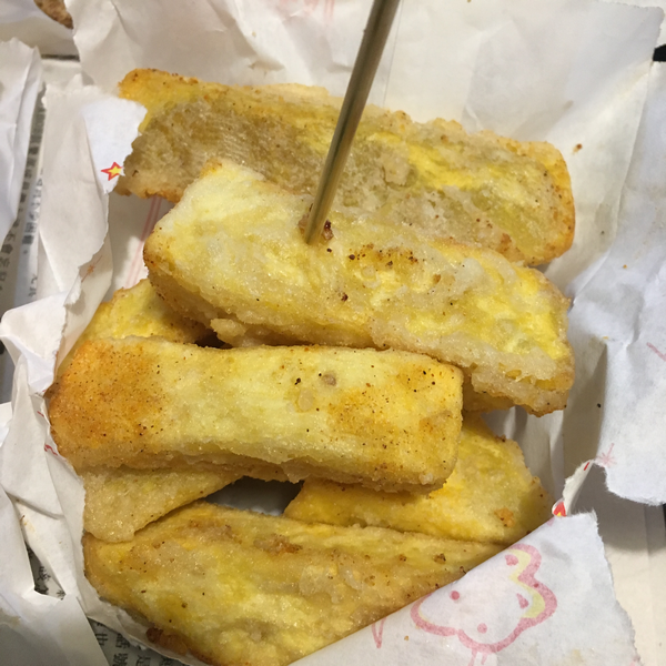 是家庭經營的炸物攤,食材新鮮乾淨,這照片是我在2019/5/1晚上19:00去買的時候拍的,所以暗了點。
