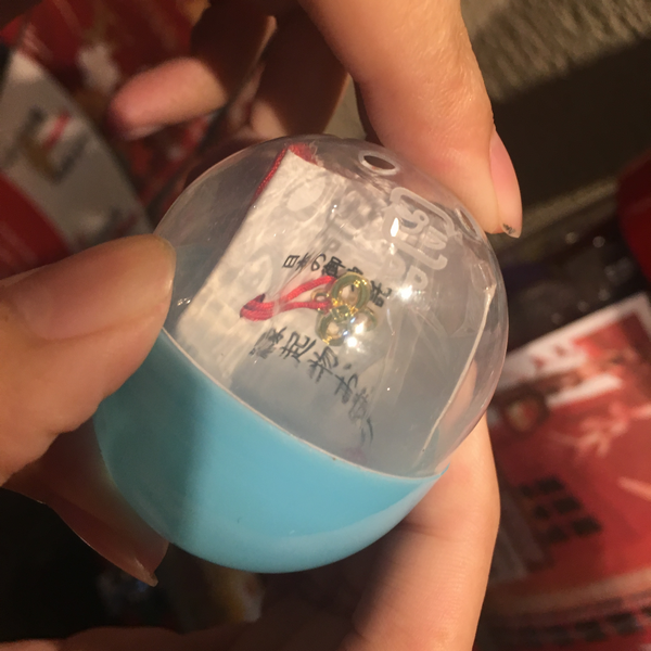 當日壽星可以跟櫃台要個扭蛋代幣,一樓旁的扭蛋機可以御守繩結之類的小玩意兒。
