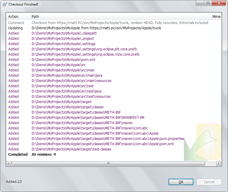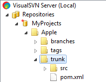 Apple專案的SVN repository路徑是https://matt-PC/svn/MyProjects/Apple/trunk。