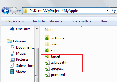 此時在專案的工作目錄會因為匯入了Eclipse而產生一些檔案,都是一些與Eclipse設定有關的檔案,也就是剛剛那些被刪除的.settings,.project,.classpath及target,不過因為設定了svn:global-ignores,所以這些檔案的任何修改都會被SVN忽略。
